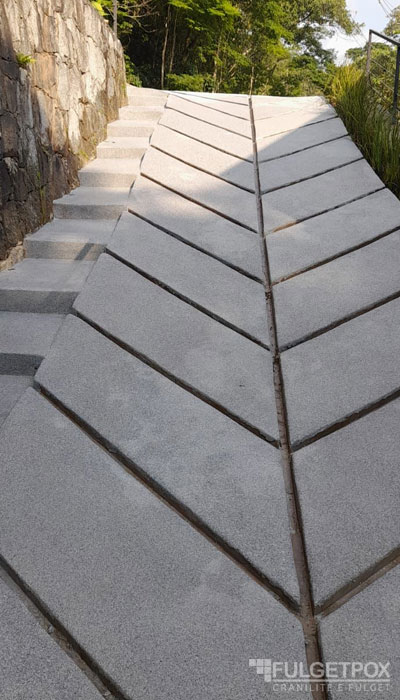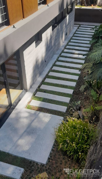 Características: O Piso Fulget, também conhecido como granito lavado é um revestimento indicado para áreas externas. Sua composição é feita por pedras naturais fragmentadas e cimento, mantendo a superfície rústica e porosa, tornando-o um piso antiderrapante.